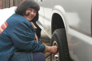 If this photo does not express independent living skills, I don’t know what does. Living alone poses all kinds of challenges… one of them being, there’s is no “man” around to help do those… you know… those “manly chores”… like… check the oil, jump a dead battery, add car fluids, and pump up a flat tire.