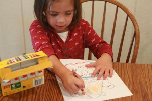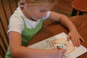 My granddaughter, Claire, came to keep me company and, was delighted when the black and white Halloween Pumpkins came zooming out of my printer.  She wanted to color them all… so I make plenty of copies.  She and her friend Hunter loved coloring the pumpkins to add to their Halloween decorations.